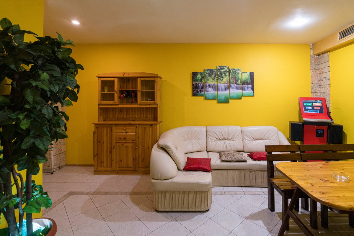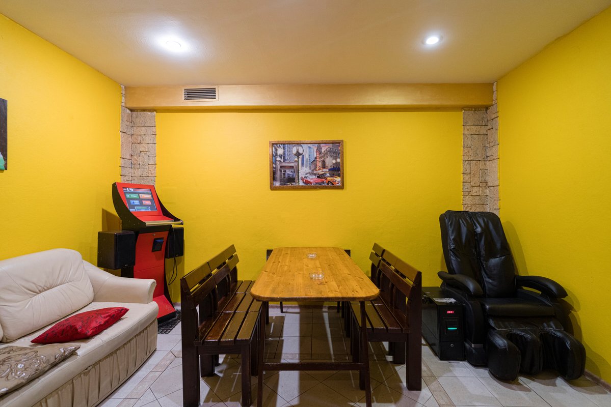 Не хочется в бассейн? Не проблема! Вместо этого можно передохнуть в нашей комнате отдыха. Мы постарались создать здесь комфортный, стильный интерьер из максимально натуральных, экологичных материалов, выбрать мебель, которая будет одновременно удобной и эстетичной. Надеемся, что вам понравится! Для создания настроения у нас есть караоке.